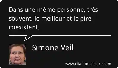 Citation Simone Veil personne : Dans une même personne, très souvent, le meilleur et le...