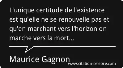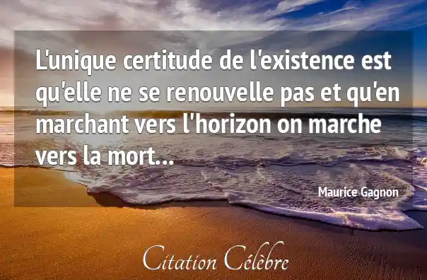L'unique certitude de l'existence est qu'elle ne se renouvelle pas et qu'en marchant vers l'horizon on marche vers la mort...