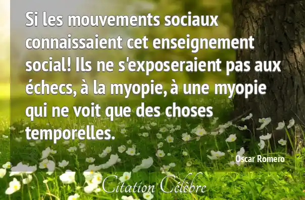 Si les mouvements sociaux connaissaient cet enseignement social! Ils ne s'exposeraient pas aux échecs, à la myopie, à une myopie qui ne voit que des choses temporelles.