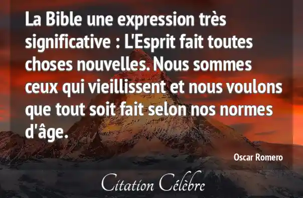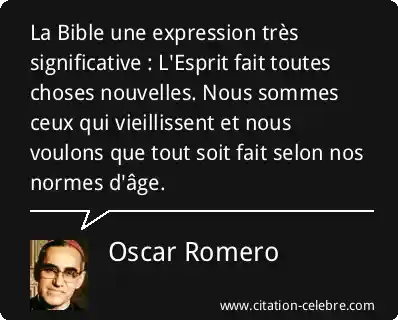 La Bible une expression très significative : L'Esprit fait toutes choses nouvelles. Nous sommes ceux qui vieillissent et nous voulons que tout soit fait selon nos normes d'âge.