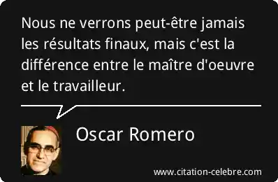 Citation Oscar Romero entre : Nous ne verrons peut-être jamais les résultats finaux, mais c'est...