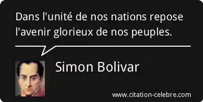 Citation Simon Bolivar avenir : Dans l'unité de nos nations repose l'avenir glorieux de nos...