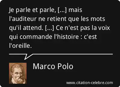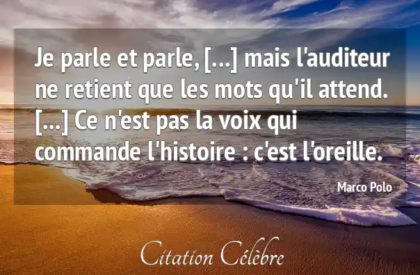 Je parle et parle, [...] mais l'auditeur ne retient que les mots qu'il attend. [...] Ce n'est pas la voix qui commande l'histoire : c'est l'oreille.