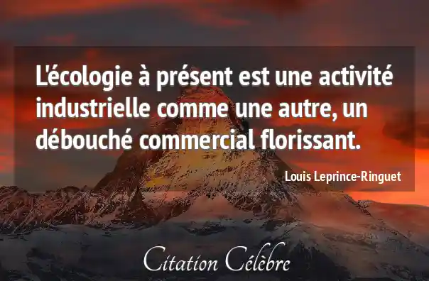 L'écologie à présent est une activité industrielle comme une autre, un débouché commercial florissant.