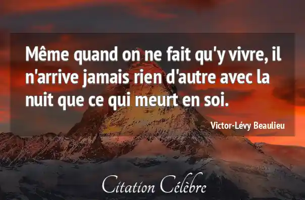 Même quand on ne fait qu'y vivre, il n'arrive jamais rien d'autre avec la nuit que ce qui meurt en soi.