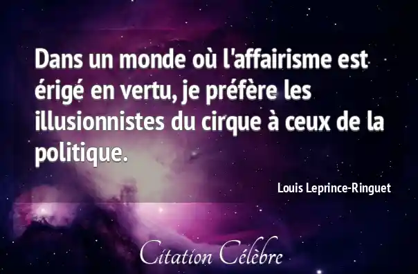 Dans un monde où l'affairisme est érigé en vertu, je préfère les illusionnistes du cirque à ceux de la politique.
