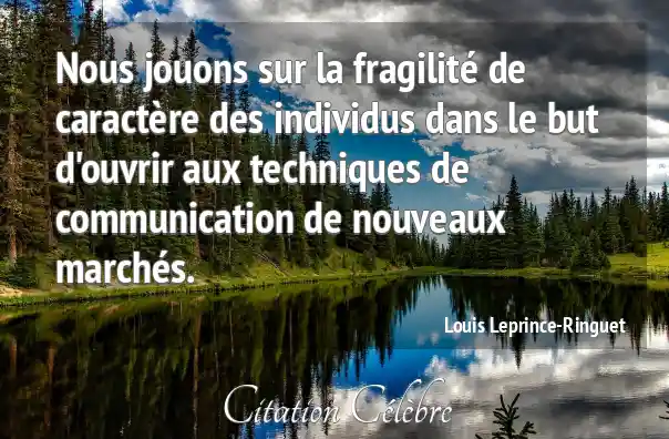 Nous jouons sur la fragilité de caractère des individus dans le but d'ouvrir aux techniques de communication de nouveaux marchés.