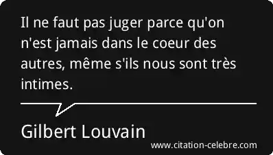 Il ne faut pas juger parce qu'on n'est jamais dans le coeur des autres, même s'ils nous sont très intimes.