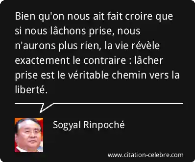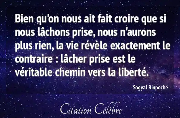 Bien qu'on nous ait fait croire que si nous lâchons prise, nous n'aurons plus rien, la vie révèle exactement le contraire : lâcher prise est le véritable chemin vers la liberté.