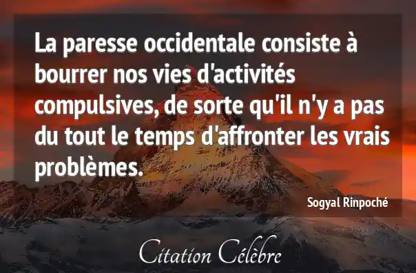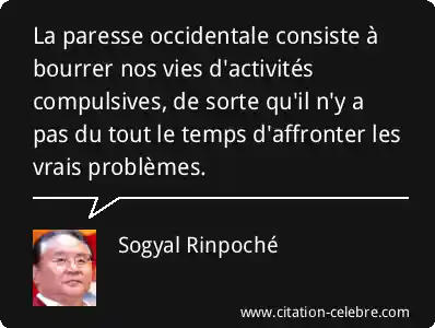 La paresse occidentale consiste à bourrer nos vies d'activités compulsives, de sorte qu'il n'y a pas du tout le temps d'affronter les vrais problèmes.