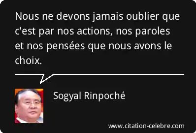 Nous ne devons jamais oublier que c'est par nos actions, nos paroles et nos pensées que nous avons le choix.