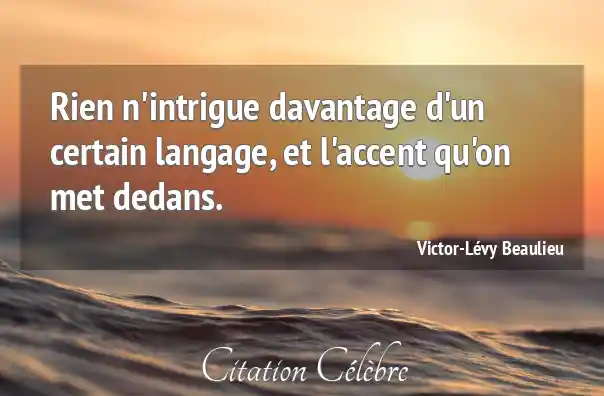 Rien n'intrigue davantage d'un certain langage, et l'accent qu'on met dedans.