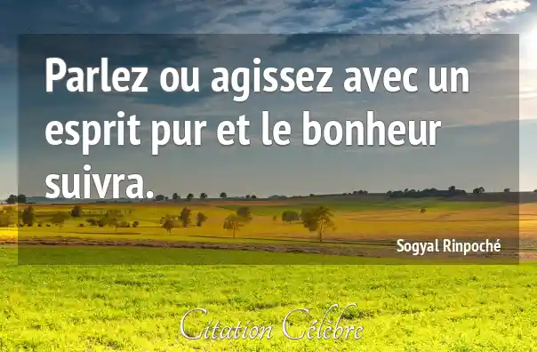 Parlez ou agissez avec un esprit pur et le bonheur suivra.