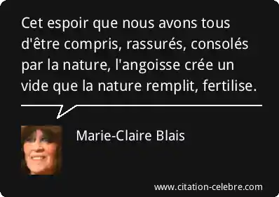 Cet espoir que nous avons tous d'être compris, rassurés, consolés par la nature, l'angoisse crée un vide que la nature remplit, fertilise.
