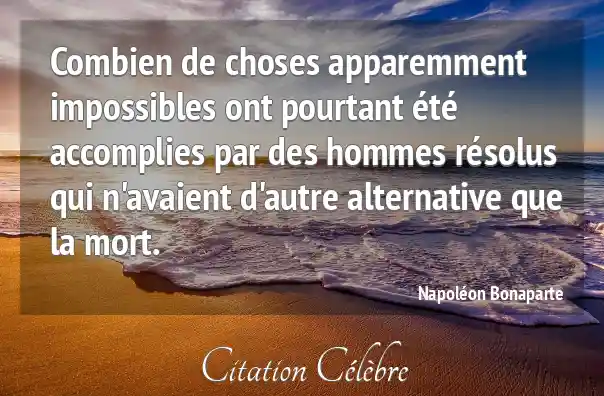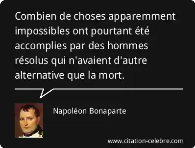 Combien de choses apparemment impossibles ont pourtant été accomplies par des hommes résolus qui n'avaient d'autre alternative que la mort.