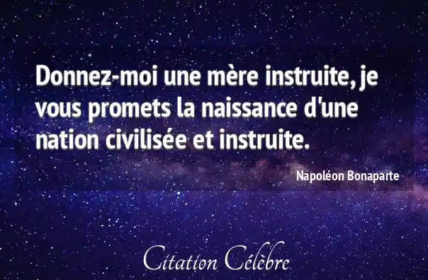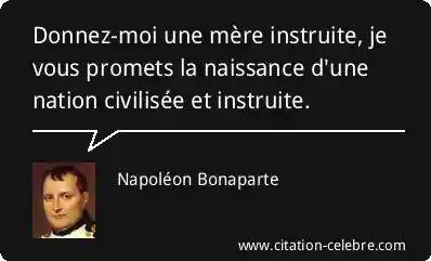 Donnez-moi une mère instruite, je vous promets la naissance d'une nation civilisée et instruite.