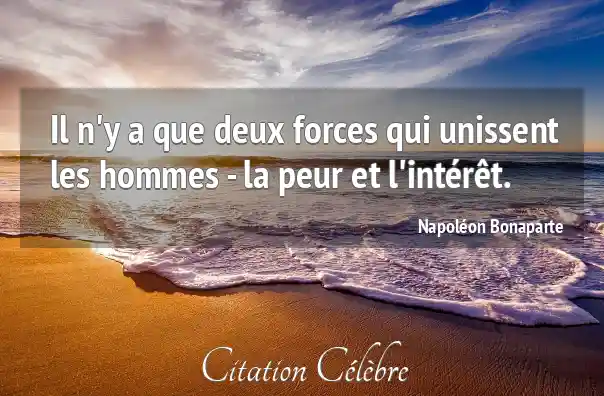 Il n'y a que deux forces qui unissent les hommes - la peur et l'intérêt.