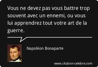 Vous ne devez pas vous battre trop souvent avec un ennemi, ou vous lui apprendrez tout votre art de la guerre.