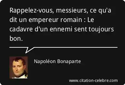 Rappelez-vous, messieurs, ce qu'a dit un empereur romain : Le cadavre d'un ennemi sent toujours bon.