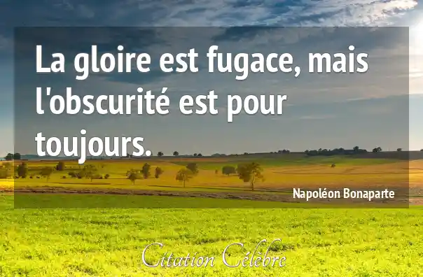La gloire est fugace, mais l'obscurité est pour toujours.
