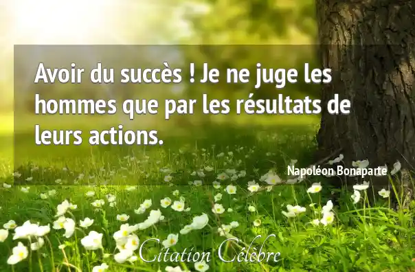 Avoir du succès ! Je ne juge les hommes que par les résultats de leurs actions.
