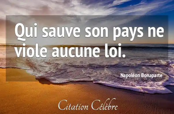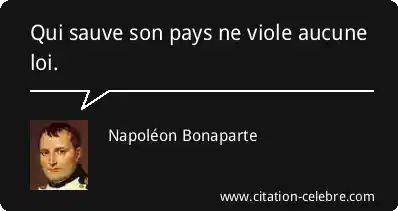 Cette puissante formule de Napoléon Bonaparte exprime l'idée que l'acte de sauver sa nation, dans une situation d'extrême urgence ou de péril, est une action d'une telle importance qu'elle transcende et annule toute autre considération légale ou morale. En d'autres termes, la survie et le bien-être de l'État constituent la loi suprême.