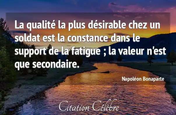 La qualité la plus désirable chez un soldat est la constance dans le support de la fatigue ; la valeur n'est que secondaire.