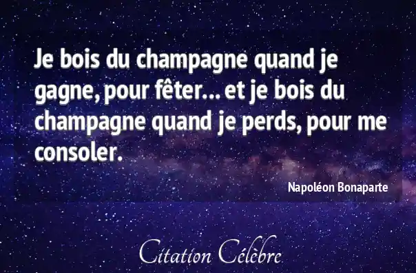 Je bois du champagne quand je gagne, pour fêter... et je bois du champagne quand je perds, pour me consoler.