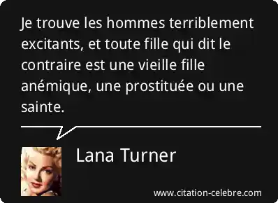 Je trouve les hommes terriblement excitants, et toute fille qui dit le contraire est une vieille fille anémique, une prostituée ou une sainte.