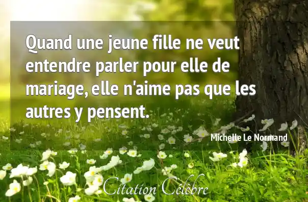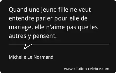 Quand une jeune fille ne veut entendre parler pour elle de mariage, elle n'aime pas que les autres y pensent.
