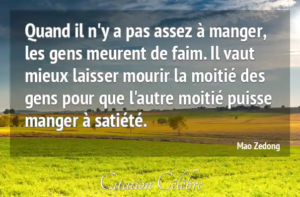 Quand il n'y a pas assez à manger, les gens meurent de faim. Il vaut mieux laisser mourir la moitié des gens pour que l'autre moitié puisse manger à satiété.