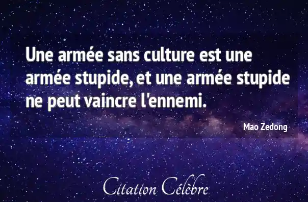Une armée sans culture est une armée stupide, et une armée stupide ne peut vaincre l'ennemi.