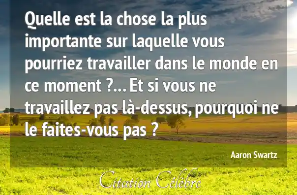Quelle est la chose la plus importante sur laquelle vous pourriez travailler dans le monde en ce moment ?... Et si vous ne travaillez pas là-dessus, pourquoi ne le faites-vous pas ?
