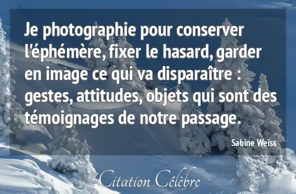 Je photographie pour conserver l'éphémère, fixer le hasard, garder en image ce qui va disparaître : gestes, attitudes, objets qui sont des témoignages de notre passage.