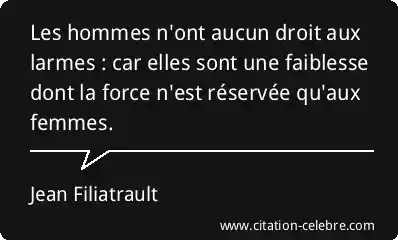 Les hommes n'ont aucun droit aux larmes : car elles sont une faiblesse dont la force n'est réservée qu'aux femmes.