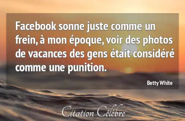 Facebook sonne juste comme un frein, à mon époque, voir des photos de vacances des gens était considéré comme une punition.