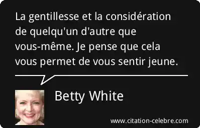 La gentillesse et la considération de quelqu'un d'autre que vous-même. Je pense que cela vous permet de vous sentir jeune.