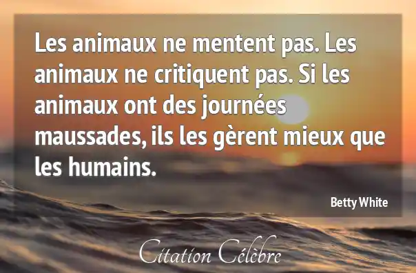 Les animaux ne mentent pas. Les animaux ne critiquent pas. Si les animaux ont des journées maussades, ils les gèrent mieux que les humains.