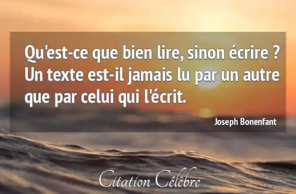 Qu'est-ce que bien lire, sinon écrire ? Un texte est-il jamais lu par un autre que par celui qui l'écrit.