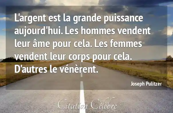 L'argent est la grande puissance aujourd'hui. Les hommes vendent leur âme pour cela. Les femmes vendent leur corps pour cela. D'autres le vénèrent.