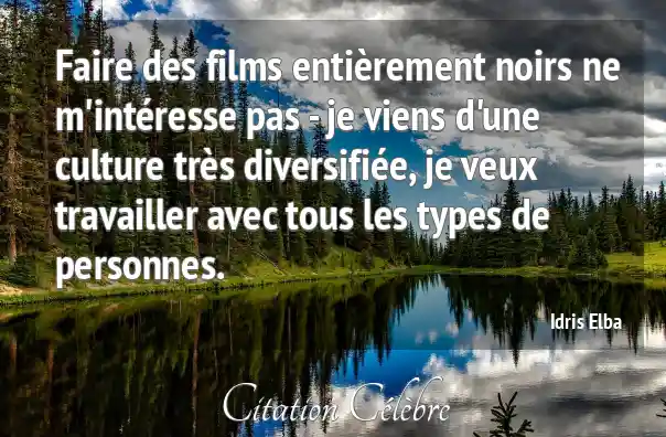 Faire des films entièrement noirs ne m'intéresse pas - je viens d'une culture très diversifiée, je veux travailler avec tous les types de personnes.