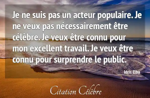 Je ne suis pas un acteur populaire. Je ne veux pas nécessairement être célèbre. Je veux être connu pour mon excellent travail. Je veux être connu pour surprendre le public.