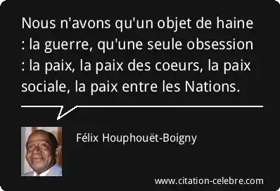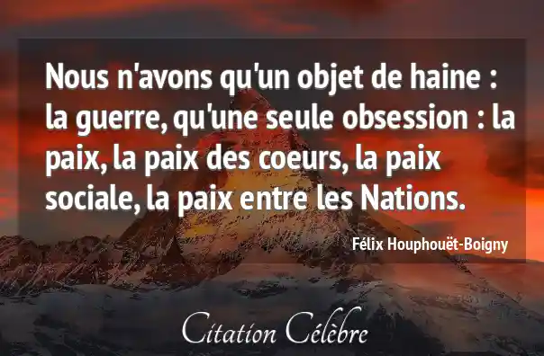 Nous n'avons qu'un objet de haine : la guerre, qu'une seule obsession : la paix, la paix des coeurs, la paix sociale, la paix entre les Nations.