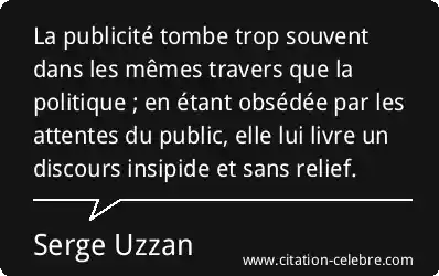 La publicité tombe trop souvent dans les mêmes travers que la politique ; en étant obsédée par les attentes du public, elle lui livre un discours insipide et sans relief.