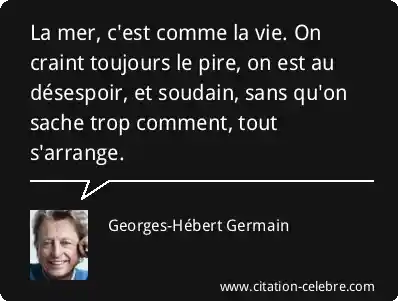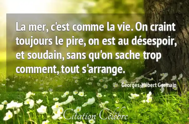La mer, c'est comme la vie. On craint toujours le pire, on est au désespoir, et soudain, sans qu'on sache trop comment, tout s'arrange.