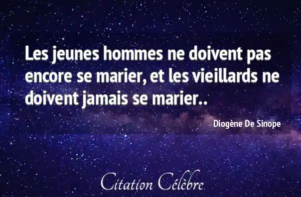 Les jeunes hommes ne doivent pas encore se marier, et les vieillards ne doivent jamais se marier..