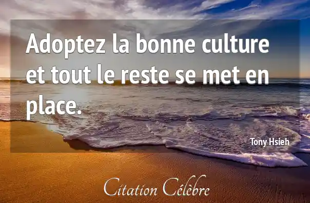 Citation Tony Hsieh culture : Adoptez la bonne culture et tout le reste se met...