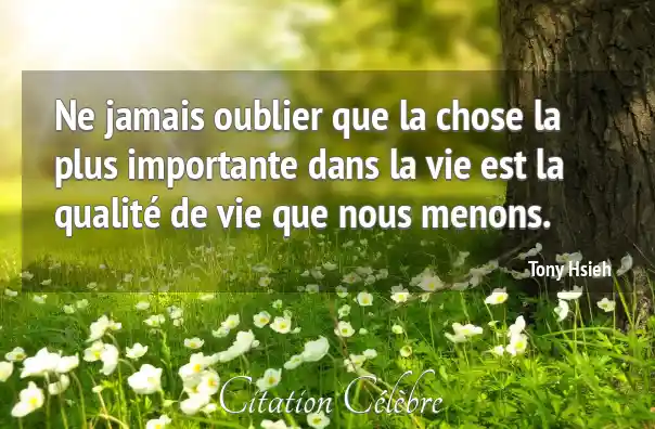 Ne jamais oublier que la chose la plus importante dans la vie est la qualité de vie que nous menons.