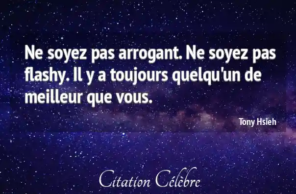 Ne soyez pas arrogant. Ne soyez pas flashy. Il y a toujours quelqu'un de meilleur que vous.