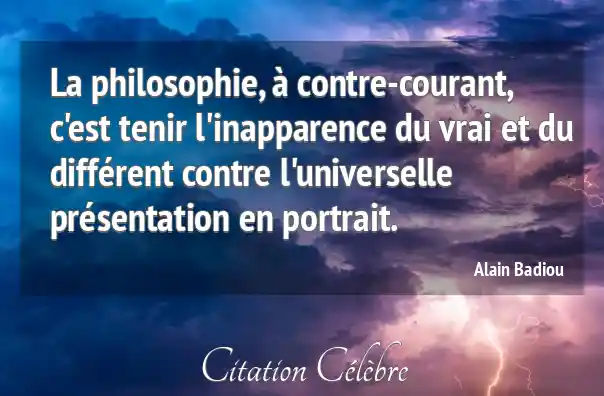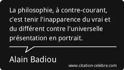 La philosophie, à contre-courant, c'est tenir l'inapparence du vrai et du différent contre l'universelle présentation en portrait.